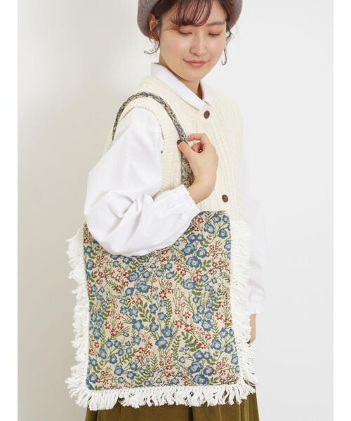 ヴィンテージ感のあるゴブランも、 トートバッグにすることでカジュアルにコーディネートできます。 バッグの周りにぐるっと付いたフリンジ飾りがポイントです。 ※商品画像は、撮影環境やお客様のご利用のPC・スマートフォンのモニター環境などにより実物と色味に差異がある場合がございます。