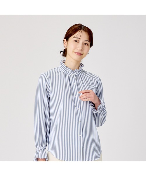 ■ COFREX(R) コフレックス ■さらっとしたしなやかな着心地で 身体を優しく包むのが魅力的な コフレックス生地を、きっちり感ある ドレスシャツのシルエットで仕上げ、 快適なビジネススタイルに。キャンディー包みのようなひらりとした 袖元が印象的で、衿元はフリル仕様を 合わせ可愛らしいデザインのブラウス。羽織は袖元が長すぎないものを選び 袖元をしっかりとアピールしたコーデが◎。【BRICK HOUSE by Tokyo Shirts / ブリックハウス バイ トウキョウシャツ】業界トップ水準を誇るノーアイロンの形態安定加工は自宅で洗濯可能でお手入れ簡単!高度な縫製技術を用いた高付加価値シャツでありながら選ぶことを気軽に楽しめます。ベーシックから多様なデザインまで幅広いバリエーションで豊富なサイズ展開で、ディテールの隅々にまで織り込んで一枚一枚丁寧に仕立てられたシャツです。