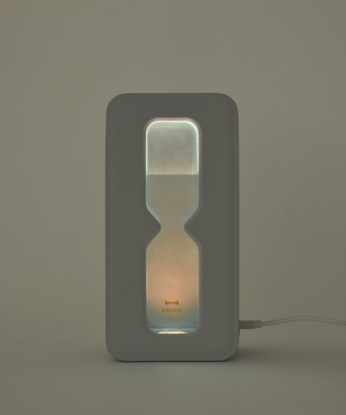 砂時計モチーフのパーソナル加湿器 砂時計モチーフの窓から水位の変化を愉しめるパーソナル加湿器。ムードライト機能搭載&アロマウォーターにも対応。 コンパクトサイズで、お気に入りの場所を加湿しながら癒しの空間へ。加湿量は3段階に切り替え可能です。 パソコン等のUSBポートやモバイルバッテリーなどに繋げてお使いいただけるので、お好きな場所でお使いいただけます。 【商品詳細】 サイズW100mm×H200mm×D72mm 水タンク容量:約500mL、コードの長さ:約1m パッケージサイズW133mm×H258mm×D108mm 重量約415g 機能加湿量 LOW:約20mL/h MID:約40mL/h HIGH:約60mL/h 連続加湿時間 LOW:約20時間 MID:約10時間 HIGH:約7時間 LEDライト:LOW/HIGH 水残量感知自動停止機能、アロマウォーター可 電源消費電力:3W、DC5V (USB) 付属品USBケーブル、給水芯×2 【BRUNO (ブルーノ)】 愉しみ上手な大人が集い、生まれた、ライフスタイルブランド たとえば、ビーチサイドを仕事場に、いつもの食卓をパーティに変え、ファッションを愉しむようにインテリアを選ぶ。 “変幻自在”で“愉しさ重視”のライフスタイルがBRUNO流。 BRUNOは、人生を愉しむための遊び心に満ちたライフスタイルをお届けします。