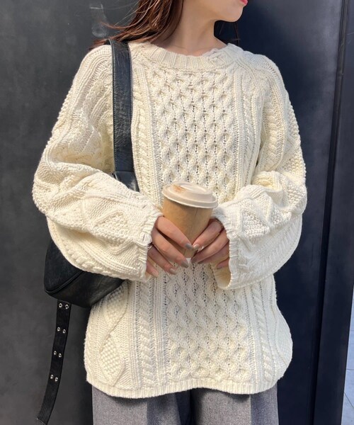 ケーブル編みがアクセントになったざっくりニット■デザイン秋冬シーズンの主役となるアラン編みクルーネックセーター。ざっくりと着用いただけるゆったりシルエットが大人の抜け感を演出。シンプルなのでさまざまなボトムと合わせやすく、1枚あると重宝すること間違いなしです。■スタイリングデニムと合わせれば定番のカジュアルスタイルに。シンプルなので、女性らしいタイトスカートやメンズライクなワイドパンツとも相性抜群です。ミニ丈ボトムにロングブーツなどと合わせるとトレンドライクな印象に◎■お手入れ方法洗濯:液温は40 ℃を限度とし、手洗いができるアイロン:底面温度110 ℃を限度としてスチームなしでアイロン仕上げができるタンブル乾燥:タンブル乾燥禁止・・・・・・・・・・・・・・・・・・・・・・透け感:なし裏地:なし伸縮性:あり光沢感:なし生地の厚さ:厚手・・・・・・・・・・・・・・・・・・・・・・▼気になる商品をお気に入り登録ハートをクリックして《お気に入り登録》がオススメです!※画像の商品はサンプルを使用しております。実際の商品と若干の仕様が変更になる場合がございますので、予めご了承の上ご注文くださいますようお願いいたします※屋外の光や照明の当たり具合で、実際の商品の色味とカラー別画像の色味に若干の違いが発生する場合がございます。詳細画像と併せてご確認の上、ご注文いただきますようお願い致します。※独自のタイムセールなどの施策により、実店舗と価格差が発生する場合がございます。※実際の店舗在庫につきましては、各店舗に直接お問い合わせください。