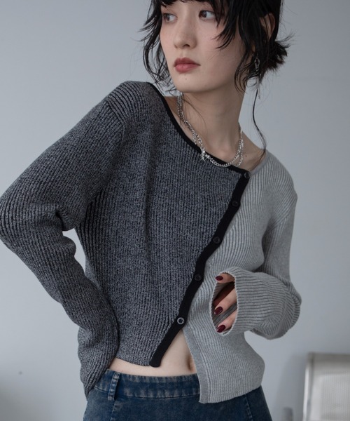 - 2025 VACANCY FALL/WINTER COLLECTION - \ 登録者数 15,000人突破 / 大胆なアシンメトリーと配色の2wayカーディンガン 新色カラー”GREEN”が登場!! ◆FABRIC 左右で配色&MIXカラーになっている目に留まるデザインカーディガン。 裾も左右で丈が違いアシンメトリーを楽しんでいただけます。 襟もとはスクエア型で着脱も安心、デコルテもキレイに魅せてくれるのも嬉しいポイント◎ コットン素材が含まれサラッと着用でき、暖かさもあります。 一枚でプルオーバーのように着ていただけます。 配色カラーは、カラーを2色合わせこだわりのMIXカラーに。 その為、馴染みやすくまとまったカラーリングになっています。 前後2wayに来ていただけるため、逆にすると真っ直ぐな配色も楽しんでいただけます。 ◆STYLE 1枚で主役級になるデザインカーディガンは、 シンプルにデニムパンツで合わせるだけで今年ぽいスタイルに。 スラックスパンツやロングスカートで合わせると綺麗めカジュアルな印象に。 プリーツパンツやデザインパンツと合わせてモードスタイルもオススメです! 少し余裕があるコンパクトなシルエットのトップスは、 シーズンレスに活躍してくれます! ・・・・・・・・・・・・・・・・・・・・ 透け感:なし 裏地:なし 伸縮性:あり 光沢感:なし 生地の厚さ:普通 ・・・・・・・・・・・・・・・・・・・・ 【お買い物をお楽しみいただく為に】 ▼お気に入り登録をオススメ致します▼ ♡をクリックして下さい。 ・《商品のお気に入り登録》で再入荷通知や、ラスト1点の通知、セールの際の通知も受け取ることができます。 ・《ブランドのお気に入り登録》で新作商品や再入荷など、お得な情報を受け取ることができます! 【ATTENTION】 ※画像の商品はサンプルです。 実際の商品と色味、仕様、加工、サイズ、素材等が若干異なる場合がございます。 ※撮影場所やお使いのモニター環境により若干お色味が異なる場合がございます。 ※製品によっては染料の特性上、湿った状態や汗をかいた状態での長時間の放置、または摩擦により、他のものへ色移りする恐れがありますので、着用時にはご注意下さい。 ※お洗濯については商品の洗濯タグ表記をご確認ください。 ※風通しがよく、湿気の少ない日の当たらない場所で保管して下さい。 ※また製品加工上、お手元に届く際に匂いが生じる場合がありますが、 ご使用を続けていく事により匂いは軽減されます。