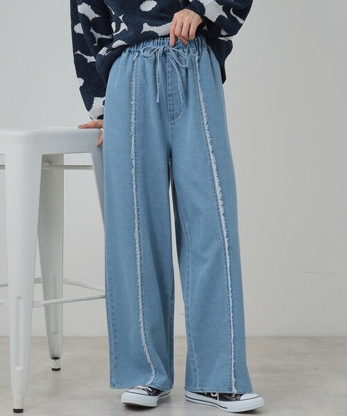 【デザイン】 センターにフリンジが入った裏起毛デニム。 ウエストはゴム仕様なので、おしゃれ見えしながら楽ちん仕様です。 程よいワイドシルエットで、着心地が良く穿いた瞬間暖かい嬉しいアイテム。 ウエストに同素材の紐が入ったドロストデザインなので、トップスをインしてもサマになるデザイン。 【スタイリング】 カジュアルコーデの定番のデニムなので、ニット、スウェットなどどんなアイテムと合わせてもサマになるアイテムです。 フリンジデザインがアクセントなので、シンプルな無地のトップスと合わせるのはもちろん、大柄なデザインのトップスと合わせてもポイント。 ワンピースと合わせたレイヤードコーデもおすすめです。 【素材】 程よい厚みの10オンスデニム。 しっかりとした肉感ながらも、重すぎないデニムです。 裏面が起毛されているので、穿いた瞬間あったかい肌触りが嬉しいポイント。 【仕様】・ポケット数:横×2 ・ウエスト総ゴム ・裏地なし ※照明の関係により、実際よりも色味が違って見える場合があります。また、パソコン・スマートフォンなどの環境により、若干製品と画像のカラーが異なる場合もございます。 #CutieBlonde#Cutie#cutieblonde#cutie#キューティブロンド#キューティ モデル情報:身長164cm B78 W56 H80 着用サイズ:02(M) 店舗へのお問い合わせ商品番号:256-69019 ●製品寸法: 01(S):W~70cm H90cm 股下64cm 前股上33cm 渡り幅30cm 裾幅27cm 02(M):W~73cm H92cm 股下66cm 前股上33cm 渡り幅31cm 裾幅28cm 03(L):W~76cm H95cm 股下68cm 前股上33cm 渡り幅32cm 裾幅29cm 04(LL):W~80cm H98cm 股下70cm 前股上33cm 渡り幅34cm 裾幅30cm 備考: