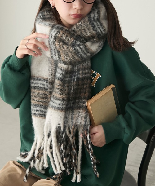ふんわりボリューム感がトレンドライククラシカルなチェック柄フリンジマフラー・トレンドのボリュームフリンジマフラー・顔周りが華やぐ大きなマドラスチェック柄・両端はフリンジ仕上げ・ふわふわ と柔らかい起毛感のあるシャギー素材・防寒対策にぴったりの程よい厚み・顔まわりを覆うたっぷりとしたボリュームで小顔効果も叶う◎・上品なベーシックカラーからポイントになるビビットなカラーまでご用意・大判タイプなので、ストールとしてもブランケットとしても大活躍-----------透け感…なし裏地…なし伸縮性…なし光沢感…なし生地の厚さ…やや厚手----------■取り扱い方法染料の性質上、汗や摩擦により色落ちしたり他のものに色移りすることがありますのでご注意ください。洗濯により多少の色落ちがありますので、他のものと一緒に洗わないでください。湿気を含んだ状態や、水につけたまま放置しますと色落ちの原因になりますので、洗濯後は乾燥機を使用しないで、形を整えてすぐに干してください。※取り扱いについては、商品についている品質表示でご確認ください。※撮影画像は、光の当たり具合で色味が違って見える場合がございます。また、ご覧になっているデバイスやモニター環境によって、実際の色味と多少異なって見える場合がございますので予めご了承をお願い致します。■スタッフ着用レビューいろいろな巻き方を楽しめる、しっかりとした長さのあるマフラー。ふっくらとしたボリューム感ながらも、デイリーに活躍しそうな軽い付け心地でした◎≪お買い物をお楽しみいただくために≫▼商品のお気に入り登録完売カラーの再入荷通知や、ラスト1点の通知、セールの通知も受け取ることができます。▼ブランドのお気に入り登録新商品や再入荷等、いち早くブランドのお得な情報を受け取ることができます。