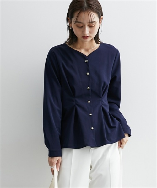 通勤スタイルにも最適◎ フロントタック入前開きブラウス【UVカット・洗濯機OK】■デザインウエストにデザインタックが入って、細見え効果のあるカットジョーゼットブラウス・衿のカットは、デコルテをキレイに見せてくれるような仕様になっています。華奢見せ効果も絶大!・後ろ部分にも前身頃と同じタック入のデザインで後ろ姿まで美しく。■素材お手入れ簡単なカットジョーゼット素材です。■おすすめのスタイリングトップスはインよりアウトで着用する方がかわいいので、パンツスタイルかタイトスカートでアウトでの着用がおすすめ♪ブラウスが少し甘めのデザインなので、タイトスカートのほうが着合わせはおすすめです。前を開けての着用も可能ですが、前閉じのほうがスタイルアップ見せが可能なのでおすすめです。【Be praised】ーーー明日ちょっと褒められる服ーーー大人トレンドを意識したこだわりのアイテムと着こなしでアナタの毎日に輝きを。ただシンプルできれいなだけじゃ物足りない。カジュアルすぎず、スタイリッシュで大人の品性を感じる着こなしに。そんな、こなれたオシャレを楽しむ女性に寄り添う、 新鮮なリアルクローズをご提案します。<仕様>ポリエステル100% 前開きボタン ※照明の関係により、実際よりも色味が違って見える場合がありますまたパソコン・スマートフォンなどの環境により、若干製品と画像のカラーが異なる場合もございます。あらかじめご了承のうえ、ご注文ください。透け感:淡色はややあり伸縮性:あり生地の厚み:普通裏地:なしポケット:なし季節:春・秋・冬シルエット:普通<洗濯方法>洗濯機OK ネット使用■キーワード20代、30代、40代、UVカット、お手入れ簡単、きれいめカジュアル、きれかじ、オフィカジ、オフィス、オフィスカジュアル、オフィスコーデ、オフィススタイル、カットジョーゼット、キレイめ、キレカジ、タックデザイン、タック入、ブラウス見えカットソー、冬、前開きブラウス、合コン、合コンスタイル、大人、大人カジュアル、女子アナ、機能性、洗濯機OK、秋、細見え、通勤、通勤カジュアル、通勤コーデ、通勤スタイル