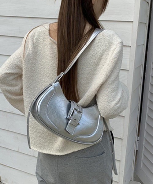 メタルパーツの飾りベルトが可愛いミニショルダーバッグです。■Designフロントについているメタルパーツの飾りベルトが印象的なミニバッグです。カバンの開閉はトップについているzipファスナーと飾りベルト下にあるボタンでやります。ミニサイズながら、携帯やお財布等の最低限の貴重品は入るぐらいの大きさ。肩紐は3段階にサイズ調整可能。ショルダーバッグ以外にもハンドバッグとしても使用できます。■Detail各パーツはメタルになっていてややハードのイメージ。ボディ部分はエナメル質で光沢感の上品なしあがり。マチがしっかりとってあるので、物も入れやすいです。軽量で小ぶりのデイリーユースに使えるワンハンドルバッグです。■カラーブラック(黒)、シルバー(銀)■スペック幅:25㎝高さ:13㎝マチ:6.5㎝重さ:250グラム★商品をお気に入り登録する★お気に入り登録しておくと、完売商品の再入荷通知を受け取れます。さらに、ラスト1点・セール時にも通知が来るから、買い逃すことがありません!★ブランドをお気に入り登録する★新入荷・再入荷など、WESTSEAでのお得なブランド情報をいち早くお知らせ。