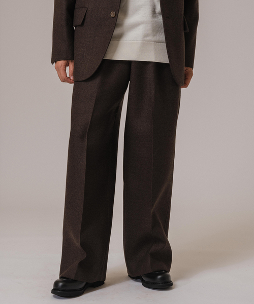 ■デザイン・シルエットMILITARY PTから着想を得た、極太のノータックワイドパンツ。生地感と相まって抜群の存在感ながら、しっかりモダン見えするアイテムでシンプルな着こなしに幅広くフィット。防寒性も高いです。■GANSHIN CARSEY(生地) SERIESとは生地から別注した先染シャンブレー高密度組織のカルゼ生地。特殊オフスケール・含浸・縮絨ミルドのトリプル加工を施しモダンでありながら深い風合いが感じられる。生地のハリ・コシ感(弾力・反発力)に優れ、皺になりにくいメリットがあります。更に縮絨ミルド加工で綾目がしっかりと目立ち、深みと温かみがある風合いも特徴的です。※同シリーズでの組み合わせもお勧めです。24010300700030 LA BOUCLE (ラブークル) GANSHIN CARSEYジャケット24011300701030 LA BOUCLE (ラブークル) GANSHIN CARSEYトラッカージャケット24020300700030 LA BOUCLE (ラブークル) GANSHIN CARSEY M65 コート24030300701030 LA BOUCLE (ラブークル) GANSHIN CARSEY ワイドパンツ24030300702030 LA BOUCLE(ブークル) GANSHIN CARSEY ダブルニーパンツ【IENA EDIFICE LA BOUCLE / ラブ―クル】IENAとEDIFICEから新しいコンセプトブランドが誕生。コンセプトは「ありふれた日常に、ちょっとした非日常を」。上質で本物を求める大人の女性・男性に向けたコンセプトブランドです。【ご注意】※照明の関係により、実際よりも色味が違って見える場合があります。またパソコン・スマートフォンなどの環境により、若干製品と画像のカラーが異なる場合もございます。※商品の色味は、商品アップ画像をご参照ください。モデルサイズ:身長:180cm 着用サイズ:3本体:ドライクリーニング