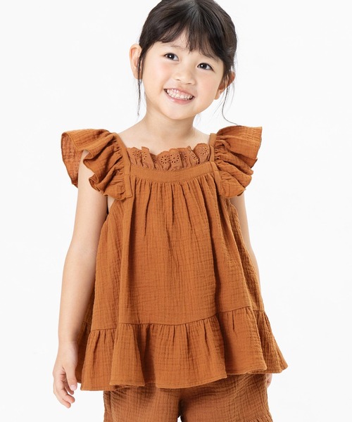 女の子らしいフリルのノースリーブトップ!■デザインシンプルながら袖のフリルが特徴的なノースリーブ。レイヤーだなどの着こなしも可能で、これからの季節に欠かせないアイテムです。チャコール、ベージュ、ブラウンの3色展開。■スタイリングボトムスはベイカーパンツやジョガーパンツが◎スカートを合せても可愛いです。ロープロファイルスニーカーと合わせたコーデも◎メッシュキャップやクロシェ編みバケットハット合わせもGOOD!■素材コットン100%------------------------------透け感:なし伸縮性:あり光沢感:なし生地の厚さ:普通------------------------------【Seraph/セラフ】毎日に新鮮なアクセントが加えられるナチュラルなデイリーウェア。ファッションの流れに敏感な、おしゃれなママとキッズのために、クリーンで繊細なデザインとディテールをやわらかく温かみのある優しい素材で表現したブランド。ボーダー、チェック、ストライプといったシンプルなテキスタイルにトレンド要素をプラス、ナチュラルな色使いを大切にウェアから雑貨まで、キッズのカジュアルで少し上品なコーディネートを提案します。【ROOPTOKYO ZOZOTOWN お買い物ガイド】▼商品をお気に入り登録!完売商品の再入荷やラスト1点の通知、セール開始時にお知らせ!▼"ROOPTOKYO(ループトーキョー)"をお気に入りブランドに登録!新商品や再入荷など、ブランド最新情報をいち早くお知らせ!是非、ご活用いただきお買い物をお楽しみください!