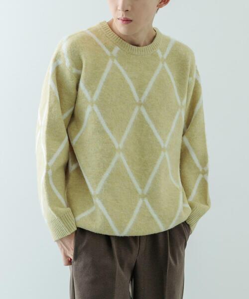 ニット素材だからこそ取り入れやすい総柄アイテム ふんわりと柔らかく暖かな、毛足が長いシャギーニット素材を使用したクルーネックニット。 全体にあしらったラインダイヤ柄は、キャッチーでコーディネートにアクセントを与えてくれます。 ニット素材に落とし込むことで印象を和らげてくれるので、柄物初心者の方にもおすすめです。 【2024 Autumn/Winter】【24AW】 総重量 : 約500g ※商品画像は、光の当たり具合やパソコンなどの閲覧環境により、実際の色味と異なって見える場合がございます。予めご了承ください。 ※商品の色味の目安は、商品単体の画像をご参照ください。 ▼お気に入り登録のおすすめ▼ お気に入り登録商品は、マイページにて現在の価格情報や在庫状況の確認が可能です。 お買い物リストの管理に是非ご利用ください。 素材感 透け感 : なし 伸縮性 : あり 裏地 : なし 光沢 : なし ポケット : なし LM