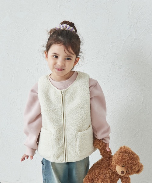 シンプルでデイリーに使いやすいボアベストです。 防寒用としてこれ1枚でも、アウターの中に着ても使いやすいアイテム。 ポケットがついて実用性が高いのも嬉しいポイント。 通園通学に1枚は持っておきたい万能アイテムです。 【ポケット】 あり(両サイド) 【伸縮性】 なし 【透け感】 透けない 【クリーニング】 洗濯機洗い可(ネット使用) 【裏地】 あり 【濃色品・色落ち色移り】 濃色品は、色落ち・色移りをする恐れがあります。摩擦(特に湿った状態での摩擦)や汗や雨などで他の衣料や下着(特に白物)に色移りしますので、十分ご注意ください。 モニター・環境等により実際の商品と色味が多少異なって表示される場合がございます。 また、生産時期により色味が若干異なる場合がございます。予めご了承ください。