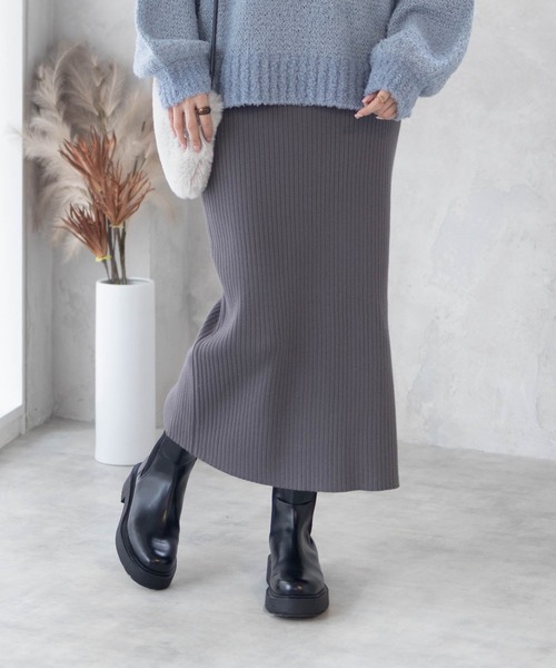 後ろスリットタイプのすっきりシルエットがポイントのニットナロースカート。ウエスト部分もベルトを切り替えず、すっきりした仕上げに。もちもち系のニット素材を使用。ワイドリブで仕上げることで、すっきりしたアイランシルエットに。同素材のプルオーバーを合わせたニットアップコーデがおすすめ。アンクルブーツとの相性もよく、チュニックトップスと合わせるだけでおしゃれ感のあるスタイリングに。-INFORMATION-◆商品のお気に入り登録をおすすめします。♡をクリック!完売カラーの再入荷や、ラスト1点の通知、セールの際の通知を受ける事ができます。◆ブランドのお気に入り登録もおすすめ!新商品や売り切れ商品の再入荷など、いち早くブランドのお得な情報を受け取ることができます!是非ご登録ください♪※掲載画像の商品の色味は、サンプル撮影であることや屋外や屋内の光の照射や角度により実物と色味が異なる場合がございます。 また表示のサイズ感と実物は若干異なる場合もございますので、予めご了承ください。