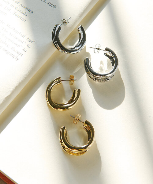 ぽってりとした見た目で存在感MAX商品ポイント・ベーシックなフープピアス・やや太めな半円に、特徴的な表面がヴィンテージライクな印象に・日常使いに適した程よいサイズ感と、しっとりとした重さおすすめコーディネートオンオフ兼用で、普段のコーデに差し込めるアクセ首元・顔周りがさみしいときにプラスしてあげると◎素材合金・ステンレス・真鍮骨格タイプストレート:全体的に立体型で筋肉質。ひざ下はすらっと細め。ボディラインにメリハリがある。ウェーブ:上半身が薄く、華奢。緩やかな曲線のボディライン。下半身に重心があり女性らしい体型。ナチュラル:筋肉や脂肪があまり感じられない体型。腰の位置が高く骨や関節が目立ちやすい。--------------------------------------------------------------------------------【注意点】※画像の商品は光の照射や角度、お使いのモニター環境により、 実物と色味が異なる場合がございます。あらかじめご了承下さいませ。--------------------------------------------------------------------------------【『♡』をクリックでお気に入り登録】・ラスト1点や再入荷の通知が届きます。--------------------------------------------------------------------------------