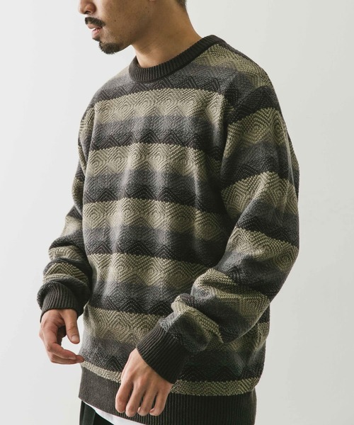 昨年人気を博したジャガード柄ニットが今年も登場。古着にありそうな柄をモチーフにしており、ボーダーのように段で色を変えながらジャガード柄を表現し、大人らしいまとまった配色でアレンジしています。ゆとりのあるサイジングで旬な着こなしを楽しんでいただける一着です。【2024 Autumn/Winter】【24AW】総重量 : 約440g※商品画像は、光の当たり具合やパソコンなどの閲覧環境により、実際の色味と異なって見える場合がございます。予めご了承ください。※商品の色味の目安は、商品単体の画像をご参照ください。▼お気に入り登録のおすすめ▼お気に入り登録商品は、マイページにて現在の価格情報や在庫状況の確認が可能です。お買い物リストの管理に是非ご利用下さい。素材感透け感 : なし伸縮性 : あり裏地 : なし光沢 : なしポケット : なしML
