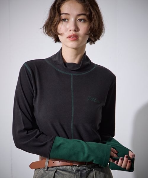袖の配色とステッチがポイントのハイネックカットソー 柔らかい肌触りで程良いフィット感で着心地◎ やや袖を長くしフィンガーホール仕様なので 1枚ではもちろん、アウターのインナーなど幅広いスタイリングで活躍! アウターのインナーとして着回し抜群なアイテムです。 〈注意事項〉 ※こちらのアイテムは、値札に表示されている価格と販売価格に1円の差があります。 システム上発生してしまう差異となるため、予めご了承ください。※ ・サンプルにて撮影をしておりますので、実際の商品とは素材やボタン等の仕様・加工・サイズ等が若干異なる場合がございます。 ・モニター・環境等により実際の商品と色味が多少異なって表示される場合がございます。予めご了承をお願いいたします。 ・撮影環境により、光の当たり具合で色味が違って見える場合があります。あらかじめご了承下さい。
