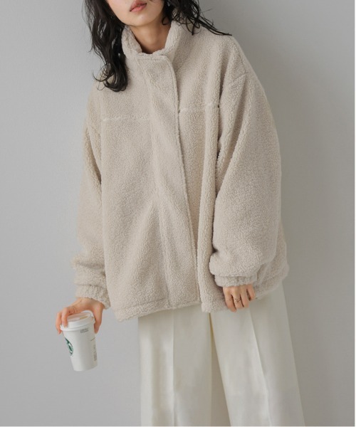 ゆるっとこなれシルエット もこもこ暖かボアジャケット ゆったりとしたシルエットで羽織りやすく、こなれ感のある スタンドネック仕様で首元まで暖かい着心地のボアジャケット。 さり気ない切り替えラインを施したシンプルなデザインに、 ボトムスを選ばないミドル丈で、合わせやすいアイテムです◎ Point01 ドローコードでシルエット変化 裾のゴムを絞めてお好みのシルエットに調節可能で、 コーディネートに合わせてアレンジできるのが嬉しいポイント! Point02 スタンドネック スタンドネックで首元まで暖かく過ごせます。 スナップボタン開閉に、ボタンの隠れる比翼仕立てで すっきりシンプルな印象に。 ■Fabric ふんわり柔らかな肌触りで 暖かな着心地のボア素材 --------------------- 透け感:なし 裏地:あり 厚さ:普通 伸縮性:あり --------------------- ▼《お気に入り登録》でお得な情報がいっぱい▼ ・「商品のお気に入り登録」で再入荷通知や、ラストの通知、セール通知も受け取ることができます。 ・「ブランドのお気に入り登録」で新商品や再入荷など、お得な情報を受け取ることができます!
