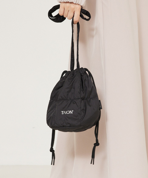 コロンとしたフォルムがキュート【Design】ちょっとした外出などに便利なサイズ感の巾着型ミニダウンバッグです。長めのストラップがついているので斜め掛けのショルダーバッグとしても使えます。小さな""TAION""ロゴプリントがアクセントになったシンプルで飽きのこないデザインも魅力です。*プレゼントにもおすすめ。【Fabric】・800FPの上質なダウンを使用しています。・リフレクタープリント""TAION""を入れています。・ショルダーストラップが付いています。(取り外し不可)・ご家庭での洗濯も可能です。※商品の特性上、縫い目部分からダウンやフェザー、中綿などの詰め物が出ることがありますのでご注意ください。【TAION=体温(タイオン)】「TAION」のブランド名の由来は、TAION=体温。 “クオリティーに対しての圧倒的コストパフォーマンスによる価値の追求 ”をスローガンとし、高品質で高機能なインナーダウンを幅広く展開しています。 色やサイズの豊富なバリエーションもTAIONの特徴です。**********************透け感:なし裏地:あり伸縮性:なし光沢感:なし生地の厚さ:普通**********************