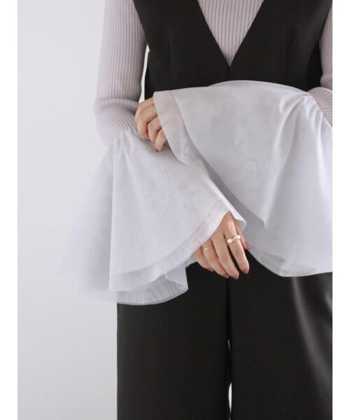 袖口のチュールフレアデザインがフェミニンな風合いを演出するリブニット。1枚で着用するのはもちろんジャケットと合わせて袖からチュールをのぞかせた着こなしも可愛く、キャミワンピースやサロペットのインナーにも重宝します。 デートや女子会などのちょっとしたお呼ばれなどにも活躍してくれる大人可愛いアイテムです。 ※商品画像は、撮影環境やお客様のご利用のPC・スマートフォンのモニター環境などにより実物と色味に差異がある場合がございます。