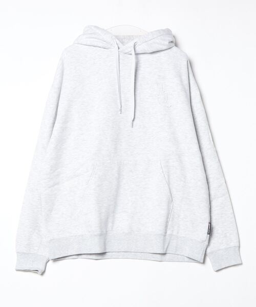 裏起毛のフリース生地を使用したフーディ。左胸元と背面の切りっぱなしのDCロゴアップリケが印象的。