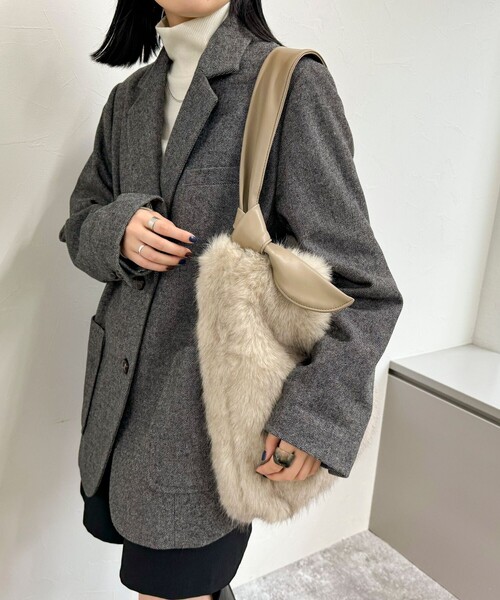 ◇fredy emue◇【2024 AW】ふわふわなファーがシーズンムード高まるトートバッグ●point・片側結びのリボンが大人っぽい雰囲気のファーバッグです・毛先のトップと内側で色の異なるミンク風エコファーが高級感のある仕上がりで秋冬のお出かけコーデにピッタリです・A4用紙サイズも入るたっぷり容量でデイリーにも使いやすいサイズ感◎・くたっとした柔らかい質感でこなれた印象を演出してくれます・ふわふわなファーが肌触り良く、持つだけでシーズンムードが高まります・シンプルですがコーデのアクセントになる秋冬コーデに合わせたい1品です《収納の目安》・A4サイズファイル・500mlペットボトル・ノート・ポーチ・スマートフォン●お取扱い上のご注意●*アテンションタグを必ずご確認の上、着用又はお取り扱い下さい。*店頭及び屋外での撮影画像は、光の当たり具合で色味が違って見える場合があります。商品の色味は、スタジオ撮影の画像をご参照下さい。*商品画像に関しては出来る限り忠実に表示出来るよう努めておりますが、お客様がご利用のモニターの設定及び特性により、実際の商品と比較し色味に若干の誤差が生じる場合があります。※サンプルでの採寸のため、サイズ表はあくまで目安となります。予めご了承ください。◇商品のお気に入り登録◇【お気に入りに登録 ♡マークをクリック】を是非ご活用ください! 再入荷の通知や、ラスト1点の通知、セールの通知がいち早く届きます。◇ブランドのお気に入り登録◇新商品や再入荷など、いち早くブランドのお得情報が届きます。