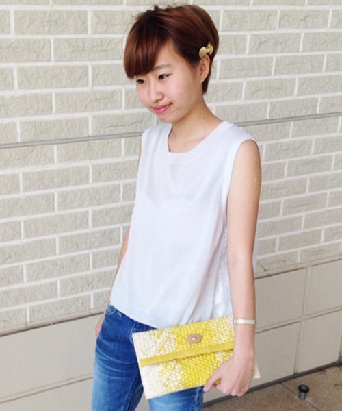 COLLAGE(コラージュ)リゾート感たっぷりのリーフ柄プリントプルオーバーです。とても涼しげな印象で、バックスタイルの柄に重ねた薄いチュール素材の生地が風になびく雰囲気がとても可愛いです♪1枚でおしゃれな印象を与えてくれるので、さらっとスカートにもトップスにも合わせやすそう♪お揃いの柄のパンツあり☆またご自宅でお洗濯できる点も魅力的ですね!!今年はノースリーブですっきりスタイル美人を目指しましょう!!