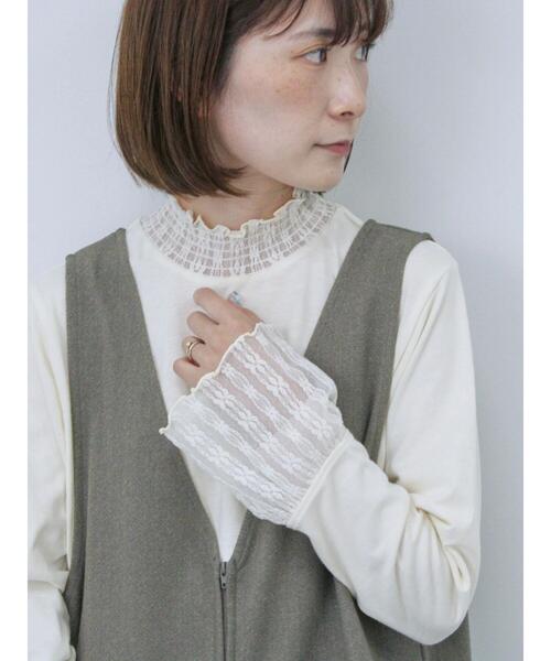 襟と袖口に施されたエアリーなフリルレースがポイントになったロングスリーブTシャツ。 ふんわりとしたフリルレースでコーディネートに甘さをプラスしてくれます。 シンプルながらも着映えするデザインも魅力ポイント。 メイン使いはもちろん、重ね着のインナーとしても活躍してくれる、着回し力の高いアイテムです。 ※商品画像は、撮影環境やお客様のご利用のPC・スマートフォンのモニター環境などにより実物と色味に差異がある場合がございます。