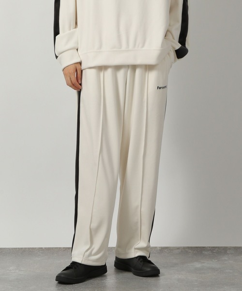 トレンド感のあるトラックパンツ。すっきりとしたシルエットとラインとワンポイントのロゴ使いで存在感のある一本。ベロア素材で温かみと上品な雰囲気も併せ持っています。【素材】肌触りが柔らかく穿き心地の良いベロア素材。【スタイリング】同素材のトラックジャケットやプルオーバーを合わせたセットアップスタイルもできるアイテム。キレイ目なアイテムと合わせてスタイルのハズしとしても活躍してくれます。※移染しやすいので他のものと分けて洗濯してください。※汗や摩擦(特に湿った状態)により色が移る場合があります。▼同素材のアイテムはこちら>ベロアトラックジャケットブランド品番:147353ZOZO商品コード:88706641>ベロアトラックプルオーバーブランド品番:147374ZOZO商品コード:88706636