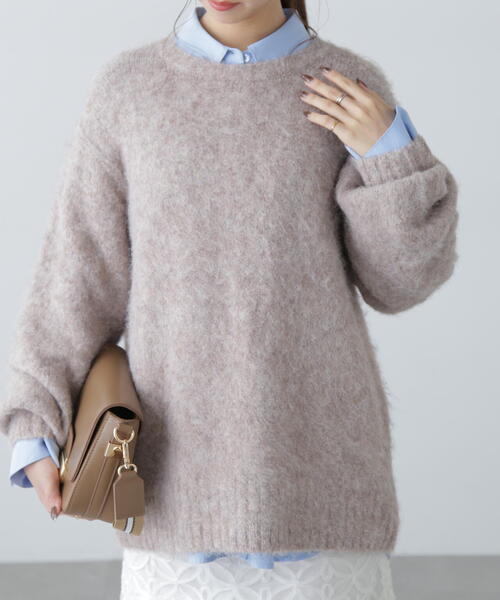 グラデーションのようなMIX感のあるカラーリングが可愛いシャギーニット。環境にやさしいリサイクル素材を一部使用したウール混を使用。 起毛加工をいれて毛足のあるウォーム感が表現されています。 全体的にルーズなビッグシルエットで、ヒップが隠れるくらいに丈感に。 後ろの裾にはセンタースリットを入れて、ボトムスがのぞくようにデザインされています。 パンツやティアードスカートなどとコーディネートするのがオススメです。 ※モデルの着用画像の場合、光の当たり具合により、実際の色味と異なって見えることがございます。 色味は、商品単体の画像をご参照ください。 ※[グリーンカラー]は写真の通りブルーがかったお色味です。 ■透け感:なし ■生地の厚さ:厚手 ■裏地:なし ■伸縮性:あり ■光沢:なし ■シルエット:ビッグ --------------------------------------------------- ◆商品のお気に入り登録◆ お気に入りアイテムの値下げ・再入荷・在庫1点などの通知を受け取ることができます。 ◆ブランドのお気に入り登録◆ 新商品や再入荷、セール、クーポン配布などお得な情報を受け取ることができます。 --------------------------------------------------- ※ご注文いただいた予約商品のお届け時期の確認は、注文履歴ページより行えます。