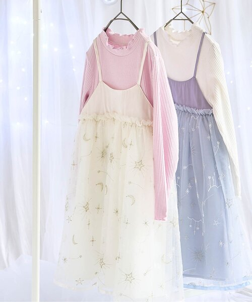 apres les cours(アプレレクール)のワンピース「【リンク】星空チュール刺繍ワンピース_アプレレクールマシェリ」 星空柄の刺繍が冬にぴったりのワンピース* リブのカットソーにキャミワンピを重ね着風のデザインで1枚でコーディネートが完成します。 ふんわりとしたチュールと優しいカラーでとびきりガーリーに* 結婚式や発表会などのフォーマルなシーンにもおすすめです◎ 同じ柄のアイテムで、きょうだいやお友達ともおそろいコーデを楽しんでいただけます。 \ あわせてかわいい!お揃いアイテム / V532054 星空チュール刺繍カバーオール ****** 【アプレ レ クール マシェリ】 マシェリのお洋服は、フォーマルとしても、ちょっとしたお出かけにも。 結婚式や入園入学式のフォーマルシーンに お誕生日や季節のイベントなどの記念フォトや ちょっとしたお出かけにも。 様々なシーンの思い出にマシェリと。 ”まいにち”に散りばめられた 小さな”とくべつ”をちょっぴり背伸びした記念日に変えて。 <アプレ レ クール マシェリ>といっしょにお祝いしましょう。 【取り扱い表示】 40℃を上限に洗濯機で洗濯、デリケートアイテムモード、ネット使用、漂白剤禁止、色物は同系の色と一緒に、洗濯後直ちに取出し、タンブル乾燥不可、日陰で吊り干し、アイロン禁止、商業ドライクリーニング不可 【ご注意事項】 この商品は着用中の摩擦や洗濯により毛羽の乱れ、毛羽脱落、毛玉が生じることが有ります。できるだけ美しくご利用頂く為に次のことにご留意下さい。 ○毛玉は毛玉取り器またはハサミで丁寧にカットして下さい。 ○毛羽が他に付着した際はテープやブラシで除去して下さい。 ○他の製品とは洗わず、単独でお洗濯して下さい。 ○タンブル乾燥はお避け下さい。 この商品はスリット糸(ラメ糸)を使用しています。 素材の特性上、着用時にスリット糸(ラメ糸)が肌に触れると刺激を感じる事があります。肌の弱いお子様は購入をお避け下さい。また、保管中に変色する場合がありますので、次の事にご留意下さい。 ○保管中は他の毛、絹、ゴム製品との接触はお避け下さい。 ○汗や汚れを付着させたままの保管はお避け下さい。 ○防虫剤をご使用の際は、取り扱い表示をよく読み、衣類に直接触れない様に保管して下さい。 ※商品により多少の誤差が生じる事がございます。あらかじめご了承下さい。 ※ご使用のパソコンやブラウザの環境により、実際の色とは多少異なる場合がございます。 ※モデル着用写真についてはイメージの為、実際の商品とカラーや仕様が異なる場合がございますので、商品画像をご覧ください。 【 apres les cours -アプレレクール- 】 「キオク いろどる、こどもふく。」 大切なキオクを彩る、お気に入りの一枚。 「アプレ レ クール」は独自の色づかいやテキスタイルで日々をトクベツに過ごせる そんな「一枚」をお届けします。