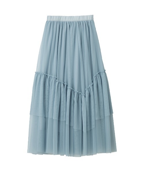 透けるチュールのロマンティックスカート。アシンメトリーなフリルが細見せの秘密。【おすすめポイント】・トレンドのバレエコアを取り入れた、はかなげな透け感のチュールスカート。・フロント側は、ティアードの切り替え線がアシンメトリー。腰まわりをすっきりと見せるテクニック。・ウエストは、後ろ側がゴム仕様で楽な着心地。【こんな人、こんな時に】・トレンド感のあるフェミニンな着こなしがしたい・下半身をカバーしてスタイル良く見せたい【デザイン】・表生地にギャザーを寄せ、たっぷりとボリュームを持たせた華やかなスカート。動くたびにふわっと広がってロマンティック・ひざ付近に施したティアードフリルは、フロントのみアシンメトリーなV型。視線をタテに流してスレンダーな印象・ウエストはベルト切り替えで、後ろ側のみ平ゴム入りでフィット・くるぶし付近のマキシ丈【素材】・表生地は透け感のあるポリエステルチュール・全体にポリエステルの裏生地付きで透け感を軽減※ウエスト部ゴム入り、後ろベンツ入り、生地:程よい伸縮性あり(よこ)◎モチーフ部は商品により個体差が生じる場合があります。《ご注意ください》金属を使用しています。肌の弱い方は長時間の着用により、赤み・かゆみ等があらわれる場合がありますので、予めご了承ください。