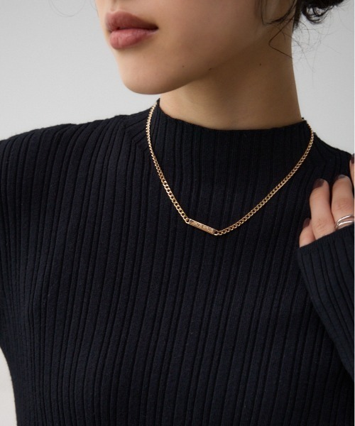 ■商品(デザイン)ポイントさりげなく刻印された筆記体のブランドロゴが特別感のあるネックレス。■商品ディティール程よいボリューム感のあるチェーンが女性らしい印象はありながらも存在感たっぷり。これからのシーズンにハイゲージのニットなどシンプルなスタイリングがアクセントになりおすすめです。■素材金属アクセサリーの場合、消毒液に触れたり、皮脂および汚れの蓄積により、変色や変質する場合がございます。定期的にふき取りのメンテナンスをお願いします。消毒液が製品に直接かかる事が無いようご注意下さい。[お気に入り登録のおすすめ]■商品のお気に入り登録お気に入りアイテムの再入荷・在庫1点などの通知を受け取ることができます。■ブランドのお気に入り登録新作アイテムの入荷や人気アイテムの再入荷、おすすめトピックスなど、いち早くブランドの情報を受け取ることができます。[注意事項]※弊社管理上のカラーを表記しており、タグのカラー表記と異なる記載となっている場合がございます。※商品画像の色味は、屋外や屋内の光の照射や角度により実物と色味が異なる場合がございます。※着用、お取り扱いの際は、アテンションタグをご確認ください。AUTUMN & WINTER ( 秋服 / 冬服 )