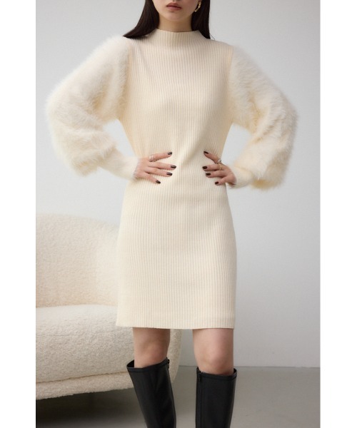 ■ポイントボリュームのある袖に温かみのあるシャギー素材が存在感を放つミニワンピースです。■ディティール身頃はもちもちとしたソフトな風合いの糸を片畦で編み立て、袖のみふわふわとした風合いの毛足のあるシャギーの糸で切り替えた編地を使用しています。■スタイリング目を引くデザインは一枚着でロングブーツ合わせはもちろん、チュニックとしてボトム合わせの着こなしもおすすめです。■生地柔らかな風合いの素材とストレッチ糸をプレーティングして身頃を編みたて、袖はシャギー素材で切り替えたニットです。透け感:オフホワイトは少しあり裏 地:なし伸縮性:あり光沢感:なし[お気に入り登録のおすすめ]■商品のお気に入り登録お気に入りアイテムの再入荷・在庫1点などの通知を受け取ることができます。■ブランドのお気に入り登録新作アイテムの入荷や人気アイテムの再入荷、おすすめトピックスなど、いち早くブランドの情報を受け取ることができます。[注意事項]※弊社管理上のカラーを表記しており、タグのカラー表記と異なる記載となっている場合がございます。※商品画像の色味は、屋外や屋内の光の照射や角度により実物と色味が異なる場合がございます。※着用、お取り扱いの際は、アテンションタグをご確認ください。AUTUMN & WINTER ( 秋服 / 冬服 )