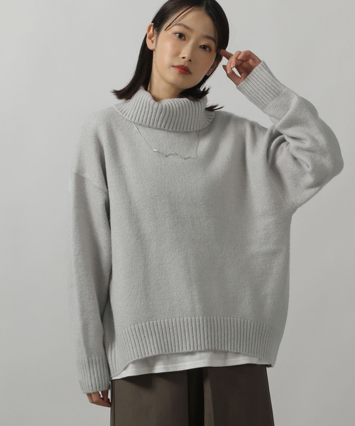 タートルネックデザインのミドルゲージニット。 ドロップショルダーに身幅にゆとりもあり、ラフな着心地の1枚です。 腰回りを隠してくれる着丈はスタイリングもしやすく、日常使いにもおすすめ。 【素材】 あたたかみのある、チクチクしない肌ざわりの素材感。 【スタイリング】 合わせるボトムを選ばずスタイリングできるアイテムです。 インにシャツやカットソーを合わせたスタイルもしやすく〇