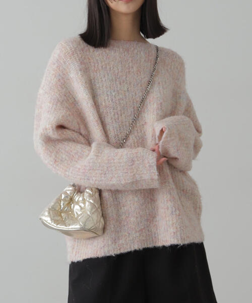 完売カラーは131-5170050/◇ラメミックスブークレー畦ニットにて予約受付中! <12月下旬-1月中旬お届け予定> 〔fabric&design〕 ふんわり感がかわいいメランジ調ブークレー糸にラメ糸をひき揃え、さりげないシャイニー感を出したミドル丈の畦ニット。 首元が広く開くので、デコルテ見せで顔まわりをスッキリと見せてくれます。 ドロップショルダーのゆったりとしたサイズ感と柔らかい肌触りがポイント。 オフショルダーやワンショルライクに、リラクシーな雰囲気で着こなしていただくのも◎ 〔styling〕 ショートパンツやナロースカートと合わせていただくのがおススメです。 ★内側の袖下に吊テープを付けいますのでハンギングの際はこちらを引っかけて店頭出しお願いします。 ※イエローは新宿ルミネエスト店・ルミネ北千住店・EC限定販売カラーです。 ■透け感:なし ■生地の厚さ:普通 ■裏地:なし ■伸縮性:あり ■光沢:あり ■シルエット:スタンダード --------------------------------------------------- ◆商品のお気に入り登録◆ お気に入りアイテムの値下げ・再入荷・在庫1点などの通知を受け取ることができます。 ◆ブランドのお気に入り登録◆ 新商品や再入荷、セール、クーポン配布などお得な情報を受け取ることができます。 ---------------------------------------------------