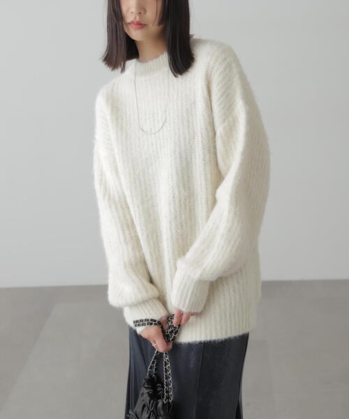 (fabric&design) ざっくりと柔らかい畦編み地に起毛加工を程こしたフラッフィーな表情がかわいいニットです。 軽くモヘアライクな暖かみがあり、程よいボリューム感で合わせやすくデイリーに着回しが効く一枚です。 (styling) ミドル丈なのでカジュアル感のあるパンツやデニムはもちろん、ナロースカートやフレアスカートなど女性らしいアイテムとも好相性◎ ■透け感:なし ■生地の厚さ:普通 ■裏地:なし ■伸縮性:あり ■光沢:なし ■シルエット:スタンダード --------------------------------------------------- ◆商品のお気に入り登録◆ お気に入りアイテムの値下げ・再入荷・在庫1点などの通知を受け取ることができます。 ◆ブランドのお気に入り登録◆ 新商品や再入荷、セール、クーポン配布などお得な情報を受け取ることができます。 ---------------------------------------------------