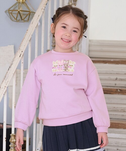 アニマル刺繍がかわいい、裏シャギートレーナー POINT ●寄り添うアニマルたちの刺繍がキュート♪ ●刺繍に施されたリボンやビジューがポイント ●暖かい♪裏シャギー素材 ■デザイン 胸元のアニマル刺繍がかわいい、裏シャギートレーナー。刺繍には、リボンやビジューが施されているのもポイント♪ミルクティー(#033)にはイヌ、ネイビー(#075)にはネコ、ラベンダー(#082)にはウサギの、寄り添ったアニマルたちの刺繍がとってもキュート!裏シャギー素材なので暖かく、通園・通学にもぴったりのアイテムです。 【裏地】なし【厚さ】厚い【透け感】なし【伸縮性】あり【ポケット】なし【洗濯機】可能 ◇any FAM KIDS X サスティナブル ◇ 私たちは「お下がり」を応援しています。サイズが小さくなってしまったらお洋服をお譲り出来るよう、3名分のお名前が書けるネームタグ付きです。 ■サイズ こちらの商品は90~130cmのサイズバリエーションがございます。(品番:TOFKCW0551) ※モデル着用画像はサンプルを使用している為、実際にお届けする商品と仕様、加工、サイズが若干異なる場合がございます。予めご了承ください。 ※掲載画像はご利用いただくPCやスマホの画面環境の都合上、実際の商品と色合いが異なって見える場合がございます。 キッズ/長袖/トレーナー/裏シャギー/アニマル/イヌ/ネコ/ウサギ/刺繍/リボン/ビジュー/通園/通学/人気/デイリー/女の子/ガール/サスティナブル商品/コスパ高/トレンド 洗濯表示 【本体のみ】40℃まで弱洗濯可 塩素系漂白不可 タンブル乾燥不可 日陰つり干し乾燥 アイロンは160℃まで ドライクリーニング(石油系)可 弱いウェットクリーニング可