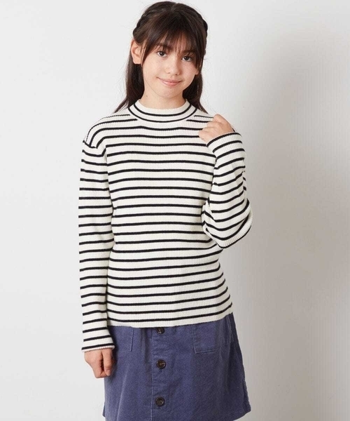 ◆秋冬シーズンに重宝すること間違いなし!ハイネックリブニット◆ 【デザイン】 ・柔らかく伸縮性の良いリブ編みのニットが着心地◎ ・コンパクトなシルエットでもたつかずすっきりと着れるデザインに。 ・コーデしやすい無地のタイプと、コーデのポイントになるボーダーのアソート展開で着回し力も抜群。 ・合わせるボトムを選ばない、秋冬には重宝すること間違いなしのハイネックニット。 ・シンプルなデザインなので、小学生~中学生まで幅広く使える 【素材】 ・ソフトで肌触りがいい、リブ編みのニット素材。 【スタイリング】 ・すっきりしたシルエットなので、裾をボトムにインしたりジャンパースカートとコーデするのがおすすめ。 ・ミニスカートと合わせ、ウエストをインしてきちんと感のあるガーリーコーデに。 ・チェックボトムと合わせて秋冬らしいおしゃれなスタイリングに。 ・ジャンパースカートやジャケットのインナーにすれば、おしゃれなお出かけスタイルにも◎ ・休日のお出かけや公園での外遊び、林間学校などの学校行事でも活躍 【カラー】 ・アイボリー…様々なアイテムとコーデしやすく、上品で女の子らしいアイボリー。 ・ボーダー…カジュアルにもきれいめにも合わせやすいボーダー柄。 ・ライトグレー…ちょぴり大人なライトグレー。 ---------------- 透け感:なし 裏地:なし 伸縮性:あり 光沢感:なし 生地の厚さ:普通 ---------------- ≪お気に入り登録機能の使い方≫ ■商品のお気に入り登録(ハートマークをクリック) 再入荷通知や値下げ等、お得なご案内を受けることができます。 ※WEB・一部店舗限定販売です。 ※同じデザインの120サイズ/130サイズ/140サイズ/150サイズございます。 120サイズ/130サイズ商品コード:KJFLV62022 140サイズ/150サイズ商品コード:KJFLW62024 ---------------- ※サンプルでの撮影となるため、実際にお届けする商品と仕様やサイズが異なる場合がございます。 ※商品画像は、光の当たり具合やパソコンなどの閲覧環境により実際の色味と異なって見える場合がございます。 商品の色味の目安は商品単体の画像をご参照ください。