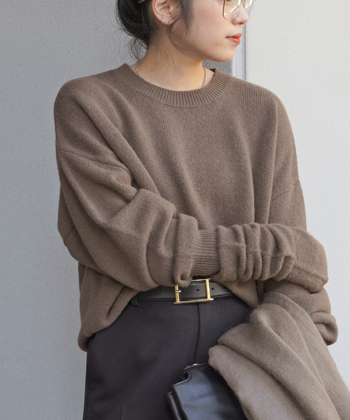 洗いをかけてもちっとふわふわした膨らみのある編地に仕上げた”EVERYDAY I LIKE.”のニット。 絨毛でとにかく軽くてあたたかいヤクを使用。 毛足が長めでもエレガントな印象になり過ぎず、カジュアルな雰囲気で合わせやすいところも魅力のひとつ。 ゆったりしたオーバーサイズでボトムを選ばず合わせやすいデザインです。 同シリーズのバラクラバやアームウォーマーとセット使いしていただくのもおすすめです! ※シリーズのご紹介 24090586804030_YAK バラクラバマフラー\17,600円 24090586805030_YAK アームウォーマー\13,200円 ********************** 透け感:なし 裏地:なし 伸縮性:あり 光沢感:なし 生地の厚さ:普通 ********************** ※照明の関係により、実際よりも色味が違って見える場合があります。 またパソコン・スマートフォンなどの環境により、若干製品と画像のカラーが異なる場合もございます。 ※商品の色味は、商品アップ画像をご参照ください。 本体:ドライクリーニング