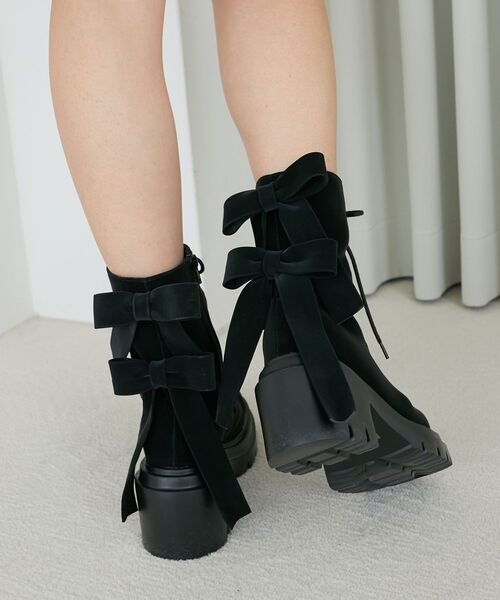 後ろ姿に魅力を詰め込んだミドル丈ブーツ ■デザイン バックスタイルにリボンを2つあしらったミドル丈ブーツ。 フェミニンになりすぎないようにマットな素材で仕上げています。 正面から見るとベーシックなので合わせやすさも◎ 少しゆったりとした筒回りで脚のラインを拾わず、さっと脱ぎ履きが出来る着脱のしやすさもポイント。 見た目以上の軽さとふかふかクッションで歩きやすさも抜群です◎ ■サイズ感 甲高・甲幅のある方も履いていただきやすいサイズ感です。 MAJESTIC LEGONシューズ対応サイズ Sサイズ 約22.0~23.0cm Mサイズ 約23.0~24.0cm Lサイズ 約24.0~25.0cm ※素材の特性により若干差異が生じる事がございます。 ■スタイリング ミニのスタイリングはもちろん、トレンドのハーフパンツやひざ丈アイテムと合わせるのがおすすめ◎ ■商品のお気に入り登録 再入荷通知やのこりわずか、お得なプライスダウンの情報も受け取ることができます。 ぜひご登録ください◎ ※サンプルでの撮影の為、製品と仕様が異なる場合がございます。 ※こちらの商品はWEB限定販売商品となっております。