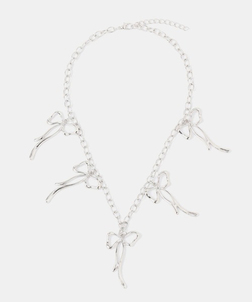 コーデのアクセントに!5リボンネックレス 5つのリボンが均等にデザインされたネックレスです。 シルバーなので、暗めのトップスに合わせると色が映えて可愛いです! いつものコーデにプラスするだけで、バレエコアな雰囲気がでるのでオススメ♪ ーーーーーーー < FOREVER21/ CONCEPT > 新しい価値観を表明するコミュニケーションテーマは「Wear No Filter」 '一人一人のリアルを、美化したり、ぼかしたりすることなく、着ることでむしろ、その人らしさが裸になっていく。 そのままを映し出すこと。それらが最も魅力的だと信じる、FOREVER21の合言葉。” 新生FOREVER21は、様々な現代的な価値観へのリスペクトと共鳴を、様々なクリエイションに表現していきます。 気になる商品は「お気に入り」登録がおすすめ! お気に入り登録商品は、マイページにて現在の価格情報や在庫状況の確認が可能です。 お買い物リストの管理に。是非ご利用ください。 【注意事項】 ※実際の商品と色味、仕様、加工、サイズ、素材等が若干異なる場合がございます。 ※商品を使用前に、タグ等に記載されている「取り扱い上の注意書き」、「洗濯表示」を必ずご確認ください。 ※商品画像は、光の当たり具合やパソコンなどの閲覧環境により、実際の色味と異なって見える場合がございます。予めご了承ください。 ※商品の色味の目安は、商品単体の画像をご参照ください。