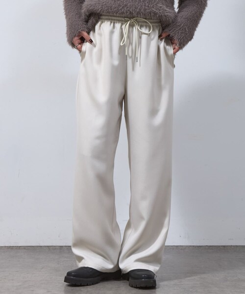 【履き心地抜群!ウールライクイージーパンツ】リラックス感が魅力のイージーパンツが登場すとんと落ちるきれいなシルエットを演出してくれますウエスト部分は総ゴム仕様で楽ちんな穿き心地なのも嬉しいポイント◎カジュアルコーデはもちろんキレイめにも使え、オンオフ問わず長い期間着用していただけます【商品ポイント】・リラックス感のあるシルエット・ロングシーズン着用可能・ウエスト総ゴム仕様----------------------------------------------------■商品特徴洗濯方法:洗濯機洗い可(弱)裏地:なし透け感:なし伸縮性:なし光沢感:なし生地の厚さ:普通----------------------------------------------------■素材(ブラウン、ブラック) ポリエステル100%(アイボリー) 表地: ポリエステル100% 裏地: ポリエステル100%----------------------------------------------------※着用、お取り扱いの際は、商品についている品質表示とアテンションタグを必ずご確認下さい。※商品タグに記載されている商品名がWEBでの表記名と異なる場合があります。※画像の商品はサンプルです。実際の商品と仕様、加工、サイズが若干異なる場合がございます。 ※照明の関係により、実際よりもやや明るく見える場合がございます。またパソコンなどの環境により、若干製品と画像のカラーが異なる場合もございます。予めご了承くださいませ。【お気に入り登録】してお得な情報をCHECK!!・「商品のお気に入り登録」で再入荷通知や、ラストの通知、セール通知も受け取ることができます。・「ブランドのお気に入り登録」で新商品や再入荷など、お得な情報を受け取ることができます。
