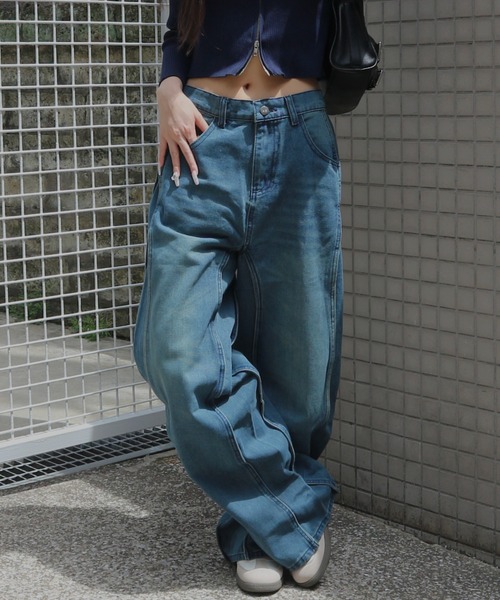 ⁑POINT⁑ ・ウェーブ状にシームが施されたデニムパンツ。 ・ストンと裾にたまるようなワイドシルエット。 ・全体的に色落ち加工されたヴィンテージアイテム。 ・ウエストはゴムとベルトループ仕様。 ※ブラック→バック部分裾にダメージ加工あり ブルー→バック部分裾にダメージ加工なし ⁑STYRING⁑ ・チビTやシアーシャツ、オフショルと 合わせたカジュアルスタイルはおすすめ。 ・人気のサマージャケットやキャミワンピースと 合わせたスタイルも。 ・足元はサムリングサンダルや厚底スニーカー合わせも。 SNS情報 【公式 Instagram】 @tinkerend_official 【公式 TikTok】 @tinkerend_official 新着アイテム&真似しやすくイマドキコーデを発信中♡ tinkerend/ティンカーエンド 「tinker」(ティンカー:試行錯誤する)と「end」(エンド:目的)を組み合わせた造語で創造性や独自性を表現します。自分のファッション個性を自由に表現できるよう、試行錯誤を楽しむことを促進し、差別化を図り独自のファッションスタイルを生み出す体験を楽しめるブランドを目指します。