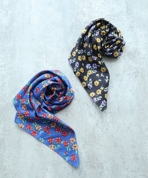 今回のプリントは、秋から春先まで長い季節の間咲いているパンジーをモチーフに、コブラン織りのようなタッチで表現しました。本来重厚感のあるコブラン織りをプリントにすることで軽やかに仕上がっています。カラミの上に柄をのせているため、凹凸で染まり具合に差があり、立体感が出ています。ワンピース、スカートに続いてスカーフも作りました。首や頭に巻いてみたり、カバンに巻いてみたり。コーディネートのワンポイントとしておすすめです。※素材の特性、お取り扱いの注意水洗い可・・・中性洗剤使用アイロン可・・・あて布使用・濃色の場合、湿った状態での摩擦や長時間放置しますと他の物に色移りする事がありますのでご注意下さい。bulle de savon(ビュルデサボン)BRAND CONCEPT女性、誰もが ふっと子供の頃を思い出し 少女のような気持ちに戻れる服。 bulle de savon =シャボン玉の事 石鹸の泡とか、においなど、 懐かしい感じ。設立年月日 1994年8月※ブルー、ブラックはサンプルです。実際の商品と仕様・加工・サイズ等が若干異なる場合がございます。※モデルの着用画像は光の関係で商品の色味が若干異なります。※取り扱いの注意については取り扱い表示をよくご確認の上、着用をお願いいたします。※工場の生産の都合上、入荷の時期が前後する場合がございます。ご了承ください。