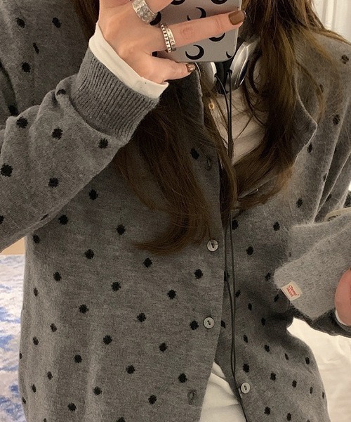 【小さめなドット柄がクラシックで大人可愛いニットカーディガン】 流行り廃りのないドット柄は何にでも合わせやすく、スカートやワンピースやパンツスタイルにもマッチします。 羽織りとしてはもちろん前を閉めてトップスとしても着られるので着回し力抜群◎ いつものコーデに取り入れるだけでトレンドライクなスタイリングに。 詳細補足 仕様:フロントボタン 伸縮性:あり, 透け感:なし, 光沢:なし 裏地:なし, 厚さ:普通 サイズ感:普通 レビュー ●staff macky(woman) /160cm / 50kg /FREEサイズ薄手のインナーを着てジャストサイズでした。 ハイウエストのボトムスにちょうど良い丈感でした。 ワンピースの上に着ても可愛いです。 ◆モデル着用サイズ ブラック:160cm/45kg/着用FREE グレー:160cm/45kg/着用FREE 【c.u.l】 ▼お気に入り登録をおすすめします▼ お得なセール情報や、人気完売商品の再入荷情報 ラスト1点の通知など、耳寄りなお買い得情報をいち早く受ける事ができます。 ブランド【c.u.l】のお気に入り登録もご一緒にお願い致します。 ■取扱注意事項■ ※サイズは、測定方法と測定者によって多少の誤差がありますのでご了承下さいませ。 また体型によって、サイズ感に個人差がございます ※商品によってはシワがつきやすく、畳みジワや折りジワなどが強く出る場合がございます。 その際は加湿した風呂場に数時間干すか、スチームアイロンでのお手入れをお勧めしております。 ※生地の素材上、においが気になる場合がございます。 その際は陰干しして頂くと、ほとんど感じにくくなります。 ※レース等の繊細な素材を使用している場合には、お取り扱いにご注意下さい。 ※デニムを使用した製品は、インディゴ染めをしています。汗や摩擦により移染しやすいので、白色、淡色の組み合わせや重ね着はお避け下さい。 ※ニット素材を使用した製品は、重みで伸びやすくなりますのでハンガーでの保管はお控えください。 ※お洗濯の際には、品質表示の指示に従ってください。必要であれば専門店にご相談ください。 家庭でご洗濯できる商品に関しては、洗濯専用ネットをご使用の上、個別での洗濯をお勧めいたします。 お色物は、色移りする可能性がございます。 ※着用画像は撮影状況や光によって、多少異なる場合がございますので、置き画像をご確認下さい。 ※2023年7月1日より、環境に配慮した取り組みの一環として、紙のアテンションタグを廃止しております。