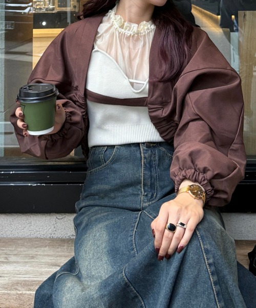 「ボリューム袖で、華やかさとリラックス感を。」ボリューム袖のブラウンジャケットで、カジュアルな中にも華やかさをプラス!ふわっとした袖のシルエットが、女性らしさとリラックス感を演出し、デイリーからお出かけまで使えるアイテムです。透明感のあるインナーと合わせて、シンプルながらもおしゃれで洗練されたスタイルを完成させます。■Point・ボリューム袖でトレンド感とフェミニンさを両立・シンプルでありながら目を引くデザイン・ブラウンカラーが秋冬のコーディネートにぴったり・リラックス感のある着心地で、軽やかに羽織れる【efill】1日のうちに触れる洋服やアクセサリー。ライフスタイルに合わせコーディネートを考え、1日をスタートさせると思います。[e]very(毎日)[f]ill(満たす)efill.を通してファッションから毎日の幸せ・ワクワクする楽しさ・パワー、刺激を共有していきたいです。efill.は「誰もが着れる締麗め大人アイテム・デートにも着て行けるプチプラアイテム]をお届けします。■Instagram【@hono_21_ @efill_official】Instagramにて新作情報更新中ここには載っていない写真も掲載しているのでぜひチェックしてみてください!■Coordinateシンプルなニットやカットソーをインナーに合わせて、カジュアルに着こなすのはもちろん、スカートやデニムと合わせてフェミニンな雰囲気に。ボリューム袖がポイントになり、シンプルなアイテムでも華やかさが増します。オフィスカジュアルにもおすすめです。※ご覧のモニター環境により、画像の色味と多少異なる場合がございます。■お気に入り登録[マーク] を押すと登録完了!お気に入りアイテムの値下げ・完売カラーの再入荷・在庫1点などの通知を受け取ることができます。・ブランドのお気に入り登録新商品や再入荷など、いち早くブランドのお得な情報を受け取ることができます。-ブランドの最新情報はinstagram【@efill_official】でご確認いただけます!