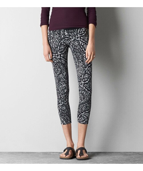 春コーデにぴったりな足元軽いクロップ丈。 シックなペイズリー柄。 コットン92%、ポリウレタン8% 、ストレッチコットン、クロップ丈、ウエストはゴム お手入れ方法:洗濯機洗い