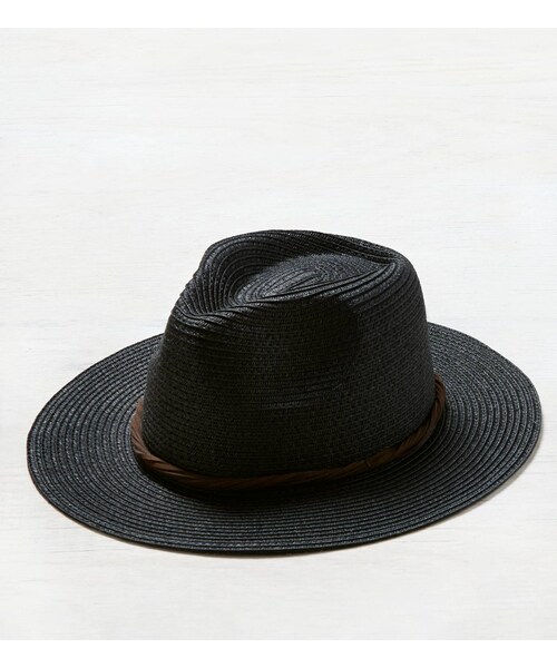 クールな印象のオーバーサイズハット。 チクチク感の少ないペーパーストロー製。 指定外繊維(ペーパー)、ポリエステル 、軽くて丈夫なペーパーストロー、オーバーサイズ、ワイドブリム、フェイクレザーのトリム
