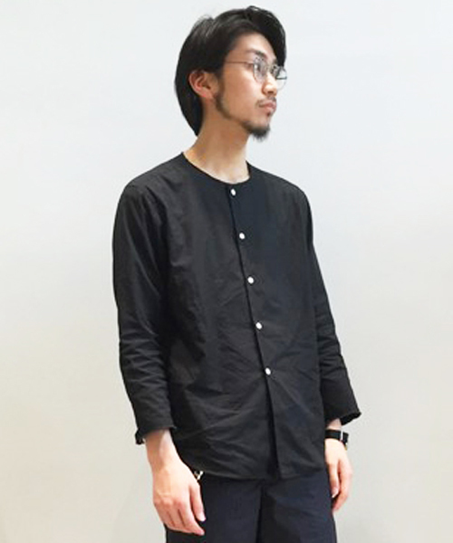 ■EN ROUTE(アン ルート)2015SSオリジナルコレクション ブロードノーカラーシャツ 光沢のあるブロード素材を用いたノーカラーシャツ。袖とカフスをカットオフしたような仕様にし、きれい目シャツをカジュアルダウンしたアイテムに仕上げました。着丈は定番よりも短めにすることでタックアウトでもすっきり見える雰囲気にしています。 店舗にお問い合わせの際は、EN ROUTE各店舗まで 下記の品名/品番をお申し付け下さい。 品名:ENR C BRD CUT-OFF SHT 品番:7111-218-0100
