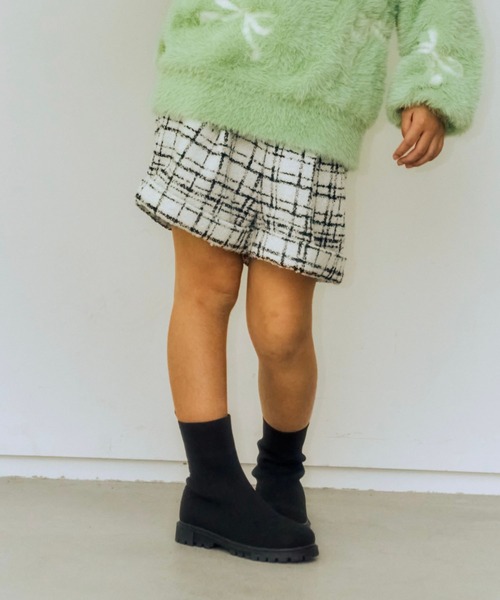 ーーー ◆デザイン シーズンムード高まるショートパンツ。 ツイード素材でオシャレ見え間違いなし。 ミニ丈なので重たい印象にならないのもポイントです。 ウエストはゴムで着脱もラクラク。 アジャスター付きでサイズ調節も可能です◎ ◆素材 少し厚手の生地感で冬でも安心。 ーーー ◆スタイリング ピタトップスやハイネックと合わせたお姉さん見えスタイルや、 ニット、カーディガンと合わせる甘めスタイルがおすすめです。 スウェット合わせのカジュアルスタイルも◎ 足元はブーツでまとめるのがGOOD。 ◆商品仕様 ウエストゴム:あり(うしろ) アジャスター:あり ファスナー:なし 裏地:あり ポケット:あり ☆お名前タグ付き お下がりやお譲りなどで長く着用いただけるよう 切り取り線付きのデザインにしております。 ※撮影環境によりカラーが異なって見える場合があります。あらかじめご了承ください。 ▶▶INFORMATION◀◀ ■商品のお気に入り登録(♡マークをクリック!) 完売カラーの再入荷通知やお得なタイムセール通知などを受け取ることができます♪ ■ブランドのお気に入り登録 新商品や再入荷など、ブランドからのおトクな情報を受け取ることができます♪ あわせてぜひご登録ください!