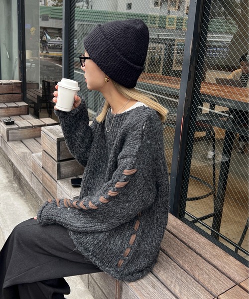 ◆Detail畦編みのざっくりと編まれた風合いが冬らしいオーバーニット。シンプルな編立てながらも、袖と脇下に施したリボンディティールが目を引きます。脇下のリボンは長さもあるためリボン結びにするのはもちろん、結ばずに垂らすだけでもお洒落な雰囲気でお召しいただけます。しっかりとした肉感もあり寒い冬にピッタリな上、肌当たりも優しく着心地も抜群◎首元はやや開きが広めのボートネックデザインなのでハイネックインナーやシャツアイテムなどとのレイヤードも楽しんでいただけます。◆Fabric--------------------------透け感:なし伸縮性:あり光沢:なし生地の厚さ:★★★★☆お手入れ方法:手洗い可--------------------------※この商品は、素材の特性上、着用の際ピリング(毛玉)が発生する場合があります。ピリングは引っ張って取ろうとせず、小さなハサミや毛玉取り器などを使用し丁寧に取り除いてください。※汗や水、摩擦により他のものに色移りすることがありますのでご注意ください。※濃色製品は色移りすることがありますので、他の物と分けて洗濯してください。※生産時期によりサイズや質感・色味に若干の個体差がみられる場合がございます。※商品画像は、光の当たり具合やパソコンなどの閲覧環境により、実際の色味と異なって見える場合がございます。予めご了承ください。※着用、お取り扱いの際は、商品についている品質表示とアテンションタグを必ずご確認ください。◆Information欲しいitemをお気に入り登録(♡マークをclick) ・お買いのがし対策…完売itemの再入荷やラスト1点の情報をお知らせ ・欲しいitemをお得にget…pricedownになったらいち早くお知らせ ・スムーズ検索…ZOZOのお気に入りアイテムページで簡単checkできるから、再検索不要♪