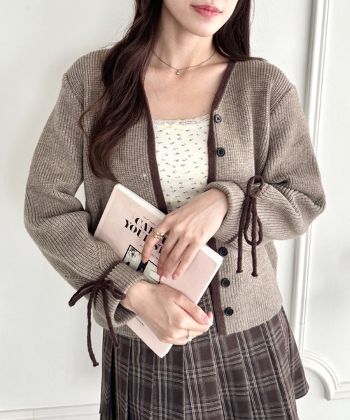 きゅっと結んだリボンスリーブにきゅん♡ デイリーに使えるニットカーディガン ▼POINT ・リボン付きのスリーブが可愛いバイカラーカーディガン ・配色デザインがシンプルながら着こなしのアクセントに ・程よくゆとりのあるシルエットでインナーも着込みやすいサイズ感 ・羽織ではもちろん、閉じてプルオーバー風に着こなしても◎ ▼STYLING 今期注目のブラウンカラーやチェックスカートと合わせるのがおすすめ。 バルーンスカートやフリルスカートでトレンドの韓国っぽコーデにも。 1枚で主役になってくれるデザインなので、シンプルなボトムスとも相性ばっちりです。 【Loueme...♡】 ”Loulou”(可愛い子) + "bohéme"(自由奔放) 造語から”Louéme(ルエム)”が誕生しました。 自由気ままに、おしゃれを楽しみ 自分のため、大切な誰かのために いつだってかわいくいたい女の子のためのブランドです。 ※ご覧のモニター・撮影環境により実際の商品と多少色味が異なって見える場合がございます。 予めご了承をお願いいたします。 ~お買い物をよりお楽しみいただく為に~ ▼”商品”のお気に入り登録 →ハートをクリック! 完売カラーの再入荷や、ラスト1点の通知、セールの際の通知を受ける事ができます♡ ▼”ブランド”のお気に入り登録 新商品や再入荷など、いち早くブランドのお得な情報を受け取ることができます♡