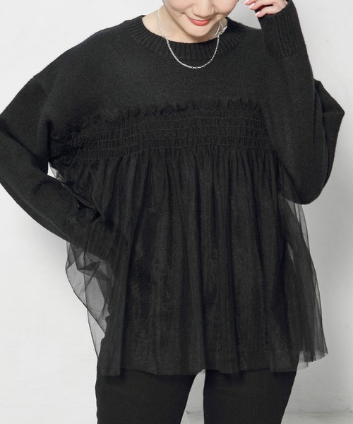 【 チュールドッキングニットプルオーバー 】 トレンドのチュールドッキングが着映える、チュールデザインニットトップスが入荷しました。 アルパカライクのふんわりとしたミドルゲージのニットにチュール素材をドッキングし、ビスチェをレイヤードしたようなデザイン。 オーバーサイズでリラックスした抜け感のある、カジュアルスタイルがおすすめです! さらっと1枚着るだけで、パッと華やかに見せてくれる今季おすすめのチュールドッキングニットです。 ■注意事項 こちらの製品は引っかかりやすい性質を持っております。脱着時には十分ご注意ください。 生地の性質上、多少縮む場合がございます。 色落ちする場合がございますので、ほかの物との洗濯はお避けください。 長時間の水への浸漬はお避けください。 乾燥機のご使用はお避けください。 当商品は機械による生産の過程上、どうしても"生地を織る際の糸の継ぎ目"や多少の"ほつれ"、ほか繊維の"混紡"、また採寸方法により多少の"誤差"1~3cm生じる場合がございます。 予めご理解くださいますよう、お願い申し上げます。 撮影・モニター環境等により実際の商品の色味と異なって見える場合がございます。 《インフォメーション》 ◆商品のお気に入り登録 完売していても再入荷時に再入荷通知を受け取ることができますので、是非ご登録ください。 ◆ブランドのお気に入り登録 新商品や再入荷などの情報を受け取ることができますので、是非ご登録ください。